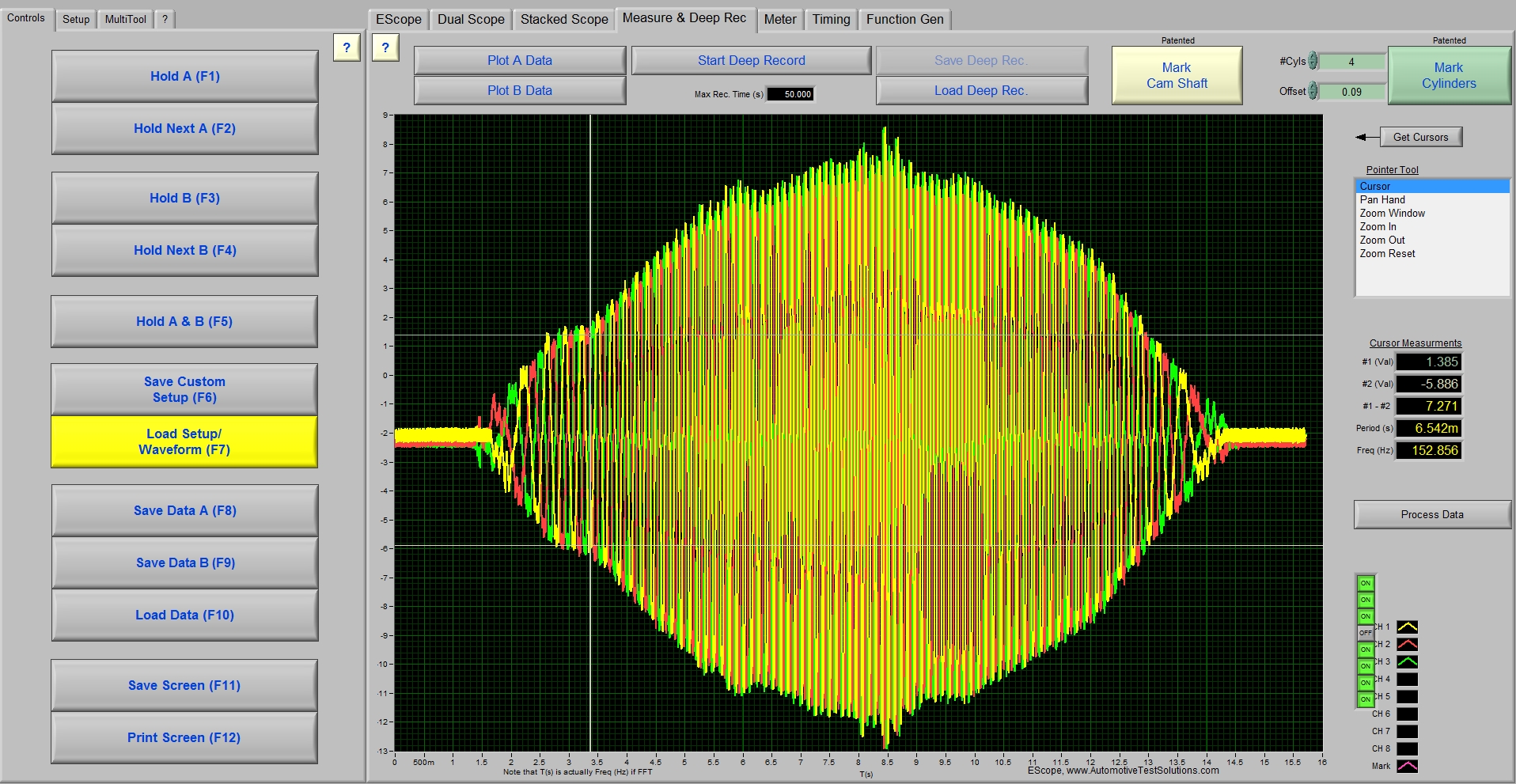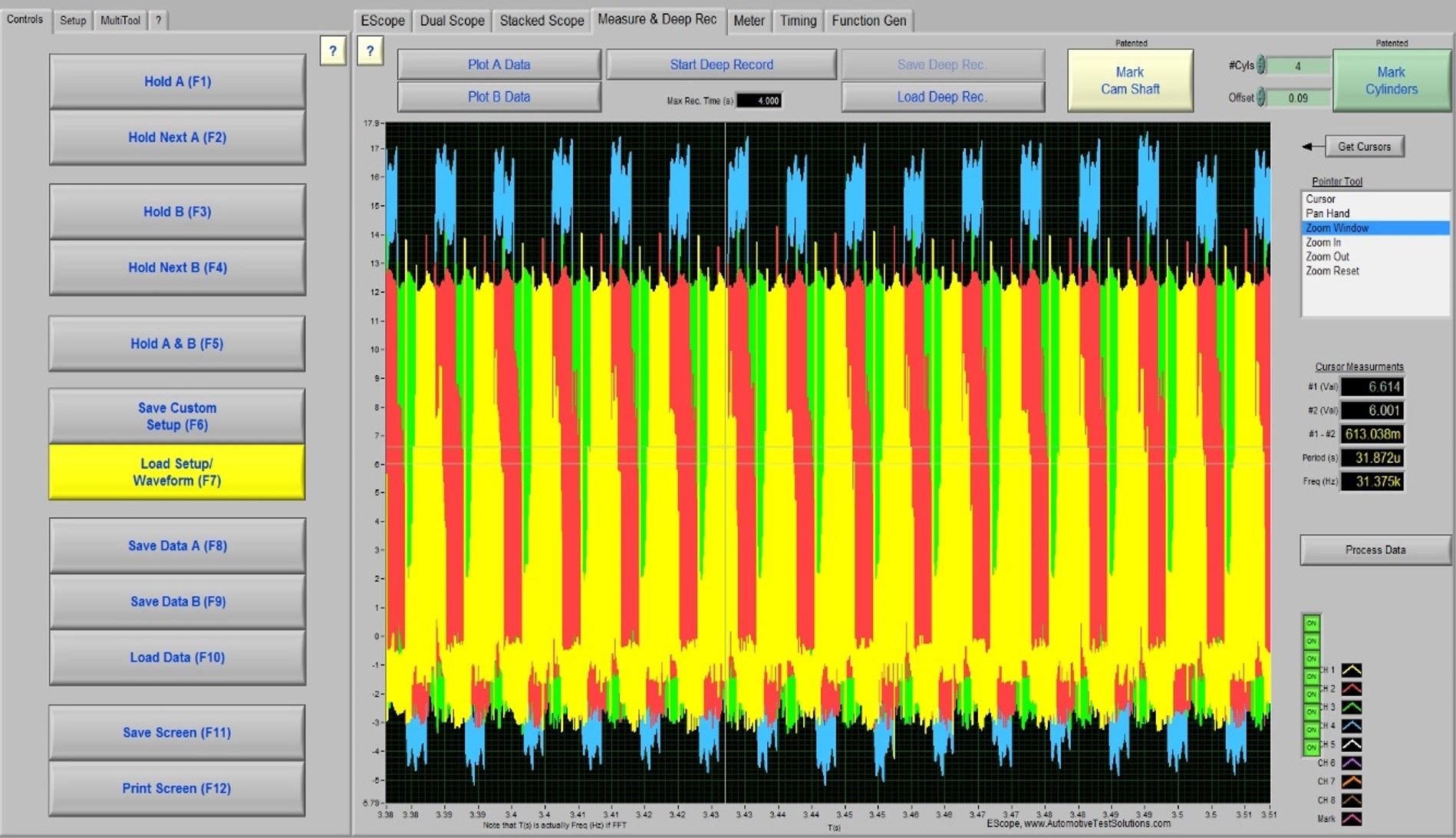 Figure 4. Zoomed in on the Hybrid Eye Motor Test. This is a safe and quick way to read general motor phase health by pushing the car back and forward in the lot with high voltage powered down properly and disconnected.