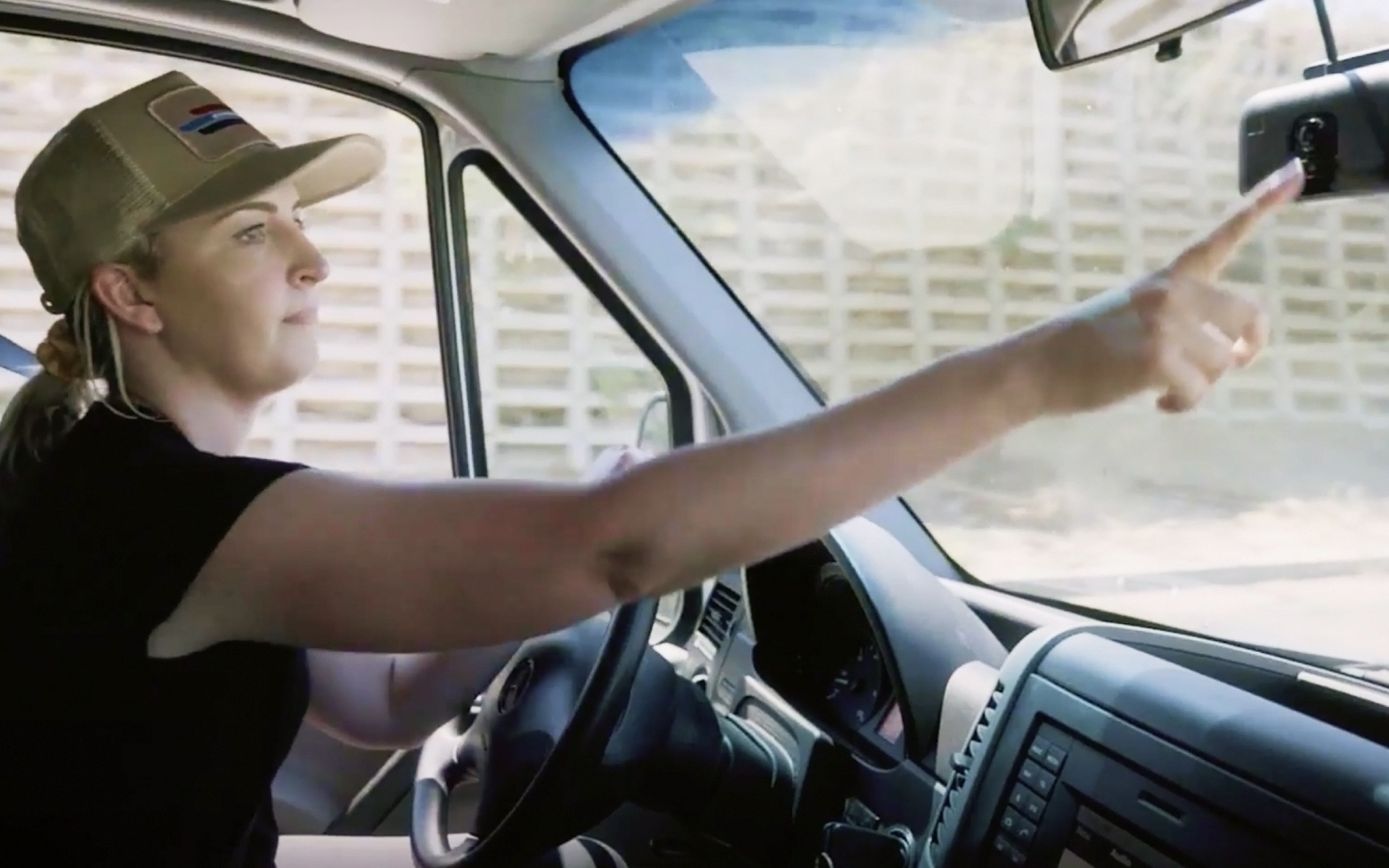 A driver sets her truck’s dashcam to operate. (Images courtesy of Motive Inc.)