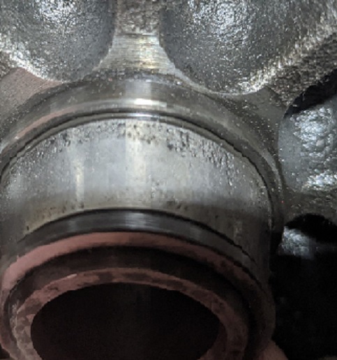 Damage, like on the inside race of this carrier bearing, is largely avoidable if the OEM fluid change interval had been followed on this vehicle (image owned by Pete Rudloff).
