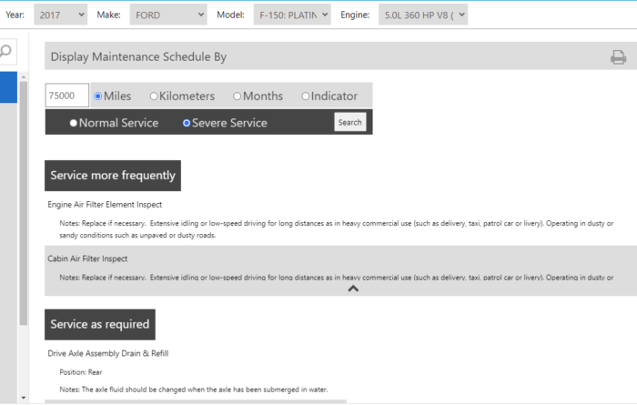 Fast and easy, it only takes a few seconds to check the OE-recommended maintenance on any vehicle at MOTOR’s e-Tech Online service information site (screenshot taken by Pete Rudloff of MOTOR e-Tech Online).