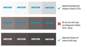 Use the blue MOTOR logo whenever possible. The black and white logo is intended for instances that do not have the color space to use the color logo. The color value for MOTOR blue is: