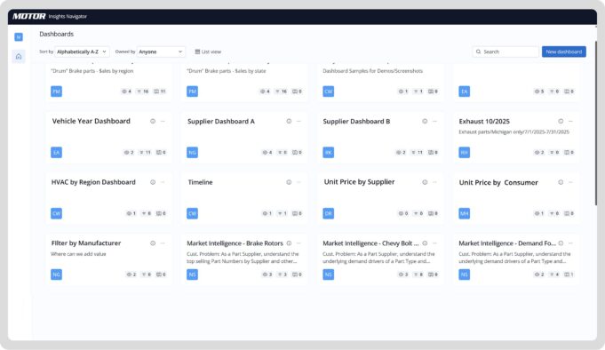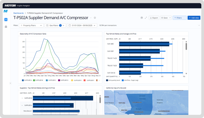 MOTOR Insights Navigator delivers clear, actionable visibility into the automotive aftermarket. Powered by MOTOR’s trusted data foundation, it transforms complex service and repair data into real-time intelligence—helping suppliers, fleets, OEMs, and investors make confident, data-driven decisions that move business forward.