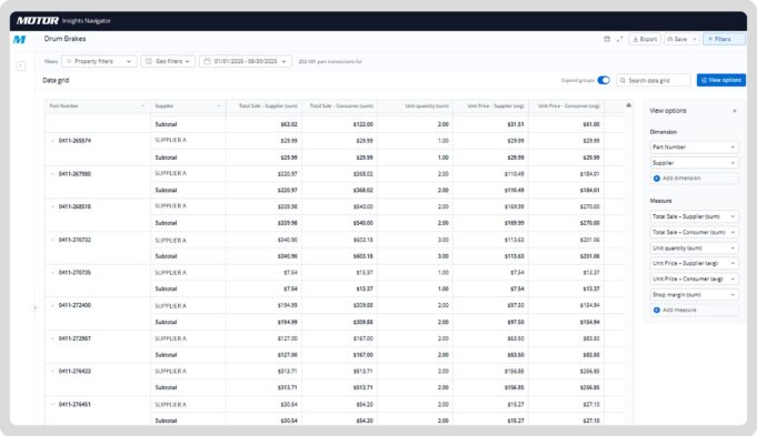 Parts retailers, manufacturers, distributors and strategy leaders use Insights Navigator to drive data-backed business decisions.
